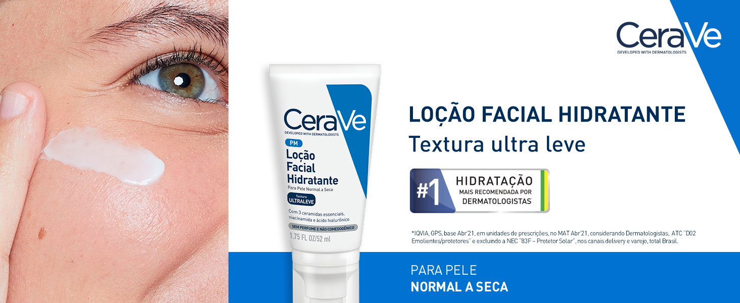 Detalhes: Desenvolvido com dermatologistas*, CeraVe Loção Facial Hidratante hidrata e ajuda a restaurar a barreira protetora da pele do rosto. Esta fórmula contém as 3 ceramidas essenciais para a pele, ácido hialurônico e niacinamida, promovendo hidratação o dia todo através de sua exclusiva tecnologia MVE, de liberação prolongada de ativos hidratantes. Indicado para pessoas com pele normal a seca, sua textura é fluida, ultra leve e de rápida absorção para uma sensação suave na pele. – Textura ultra leve – Ajuda a restaurar e manter a proteção da barreira natural da pele. – Liberação prolongada de ativos para uma hidratação que dura o dia todo. – Ajuda a reter a hidratação natural da pele. – Estimula as ceramidas e colágeno, com ação antiinflamatória, suavemente clareadora. – Suave na pele: Fórmula de rápida absorção. – Não obstrui os poros. – Sem perfume. Principais Ativos: – 3 Ceramidas Essenciais (1, 3 e 6-II): Todos os produtos CeraVe contém as 3 ceramidas essenciais que a pele precisa, ajudando a restaurar e manter a proteção da barreira natural da pele. – Exclusiva Tecnologia MVE: Liberação prolongada de ativos para uma hidratação que dura o dia todo – Ácido Hialurônico: Ajuda a reter a hidratação natural da pele – Niacinamida: Estimula as ceramidas e colágeno, com ação antiinflamatória, suavemente clareadora. Benefícios: – Ajuda a restaurar e manter a proteção da barreira natural da pele. – Liberação prolongada de ativos para uma hidratação que dura o dia todo. – Ajuda a reter a hidratação natural da pele. – Estimula as ceramidas e colágeno, com ação antiinflamatória, suavemente clareadora. – Suave na pele: Fórmula que não resseca. – Não obstrui os poros. – Sem perfume. *CeraVe: Desenvolvido com Dermatologistas. Produto foi desenvolvido com base em informações e necessidades indicadas por dermatologistas. Em 2005, os dermatologistas da CeraVe desenvolveram uma linha de produtos para a pele enriquecidos com uma mistura de três ceramidas essenciais (ceramidas 1, 3 e 6-II), ácidos graxos e outros lipídios para ajudar a reparar e fortalecer a barreira natural da pele. Atualmente, a CeraVe oferece mais de 70 produtos desenvolvidos para hidratar, restaurar e reabastecer todos os tipos de pele. Aplicar generosamente nos pés sempre que necessário. Esfoliação e hidratação são essenciais para pés suaves e macios. Recomendamos um creme para os pés com ácido salicílico, como o Creme Renovador de Pés CeraVe, que ajuda a eliminar o acúmulo de células mortas e proporciona uma hidratação duradoura. Ingredientes adicionais como ácido hialurônico, retém a umidade, e a niacinamida promove uma ação calmante e ajudam a suavizar a pele áspera. Além disso, a presença das ceramidas repõe as ceramidas naturais da pele para ajudar a manter a hidratação.