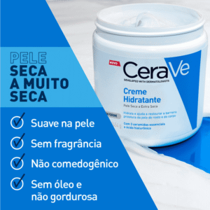 Kit com creme hidratante e gel de limpeza para peles secas a extrassecas. CeraVe Hidratação e Limpeza apresenta textura cremosa e de rápida absorção para uma sensação suave na pele.